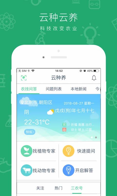 帮助农户解决农业种植、养殖过程中获取技术服务难、找寻专家难的切实问题,将一线种植、养殖生产者与农业专家高效链接,发挥农业专家在品种选择、病虫草害、旱涝冻害、采收储运、肥水管理、品牌打造、市场行情、销售渠道等产业链中的指导价值,大幅降低农户对农业技术的获取成本,构建垂直的本地化农村电商生态。