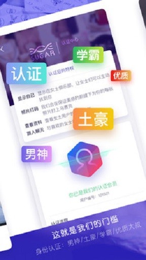 这不是那种填个手机号码就可以注册的交友软件,SUGAR的用户都是高素质的,必须通过我们的认证门槛。