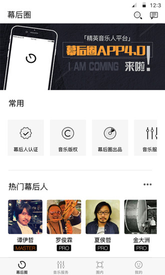 · 在幕后圈你可以寻找音乐人合作,无论是制作人、编曲、混音等,幕后圈超过2000位国内一线职业音乐人为你服务。