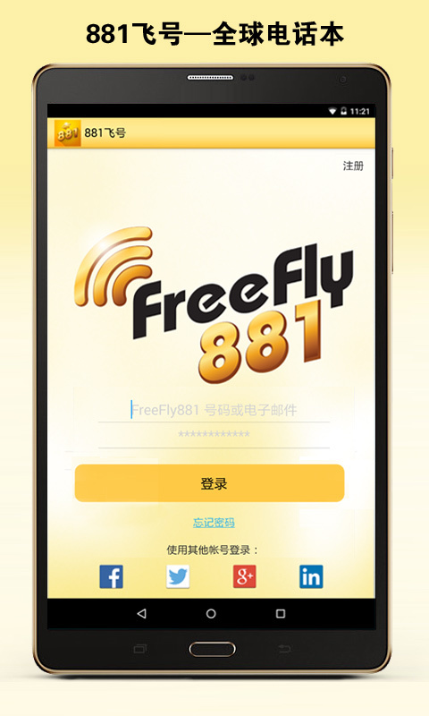 881飞号(FreeFly881) 通过Wi-Fi和互联网为业务和客户提供免费全球电话本与免费语音通话服务。