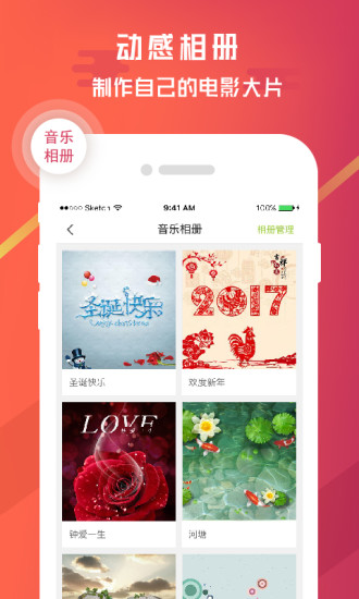 (3)音乐相册制作:提供多种音乐相册模板,秒变动感音乐大片,相册云存储,不占手机内存。