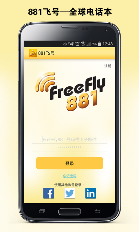 881飞号(FreeFly881) 通过Wi-Fi和互联网为业务和客户提供全球电话本与语音通话服务。