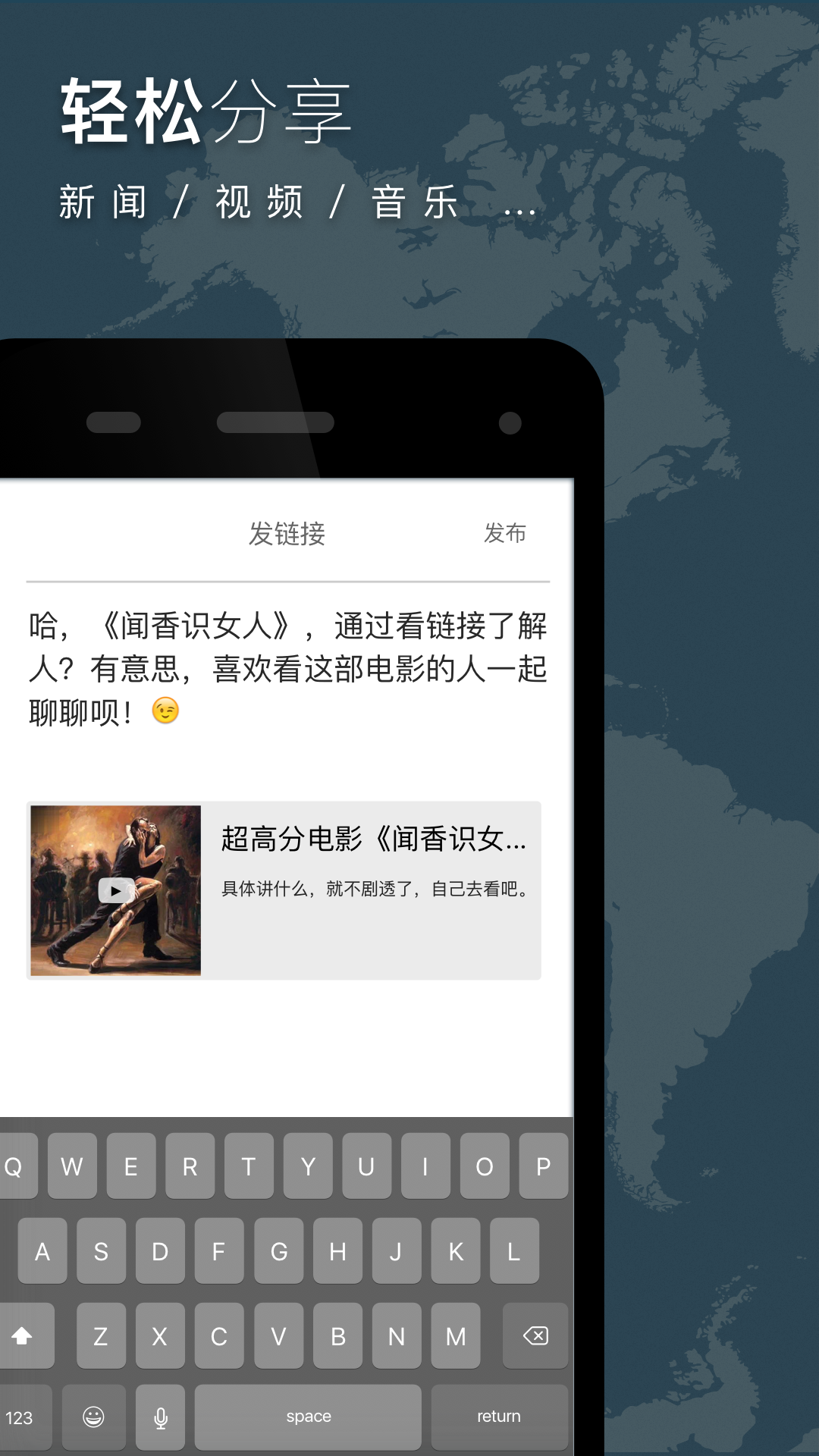 ●地图交友:看腻了千篇一律的好友列表?来试试好友地图吧!每个人都可以把自己定位在地图上的任意一点(当前真实位置仅自己可见),靠近别人的定位点就能看到他所发布的链接,缩放和移动地图就能遇到有趣的人。快去自由探索吧!(暂时只开放国内地图)