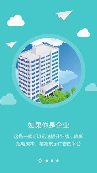 如果你是企业,这是一款可以迅速提升业绩、降低招聘成本、展示广告信息的软件;发布您的招聘需求,形成自己的招聘网店,分享到社交圈,实现效率招聘;发布广告模块,发布您的产品、招聘广告,进行信息展示;