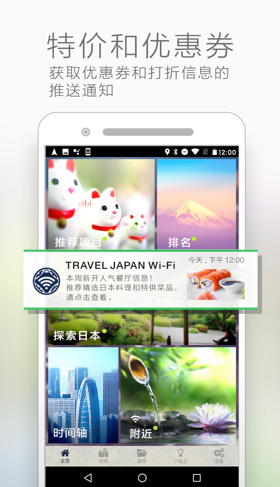 使用 "Travel Japan Wi-Fi" 应用,您将能连接超过 200,000 个免费 Wi-Fi 热点,它还可为您提供实用的旅游小贴士! 我们免费且快速的 Wi-Fi 服务将使您的日本之行轻松愉快!