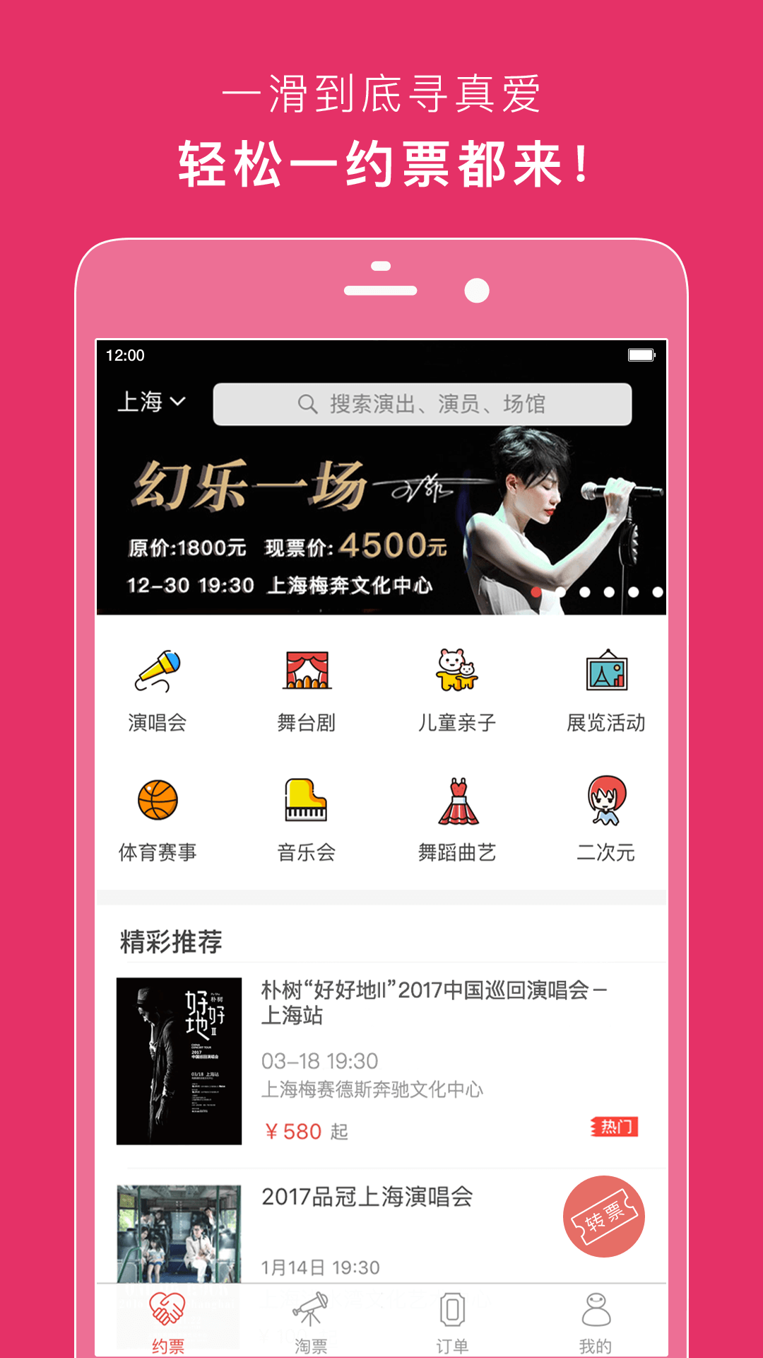 【约票】 一直想看的演出终于开场了,但是你却因为没有买到票而苦恼不堪?告别买不到票的苦恼,上玩票约张门票,现场触手可达!