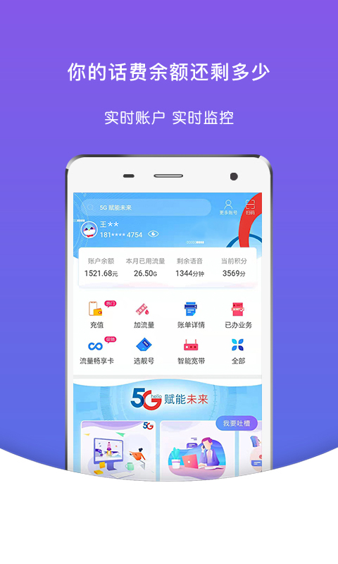 ? 账号套餐查询:实时话费、流量明细、历史账单、积分兑换、套餐余额、已订业务、个人信息等查询, 让您一目了然,心中有数;