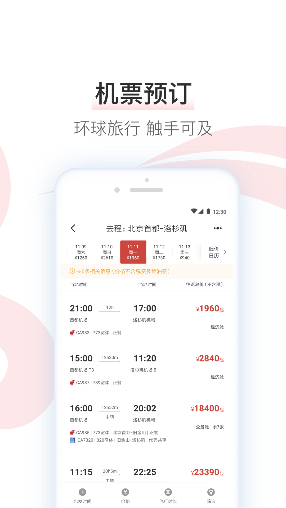 中国国航APP v6.0来了,全新页面设计,服务全面升级。
