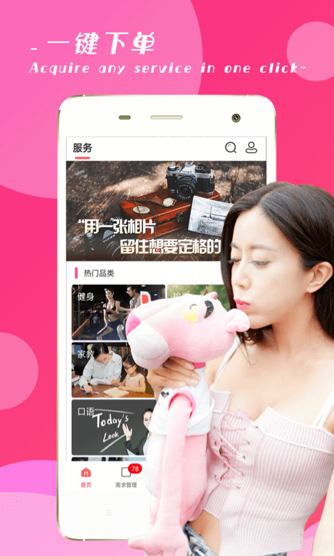 百余种行业达人为您服务:健身、家政、保洁、搬家、情感咨询、台球、跑步、登山、瑜伽、摄影、汽车陪练、美甲、宠物、家教、口语等。