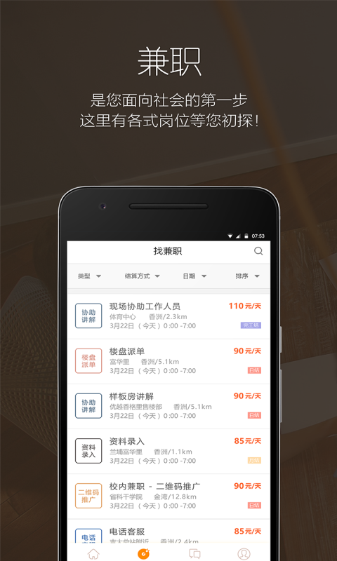 ·兼职:是您面向社会的第1步,这里有各式岗位等您初探!