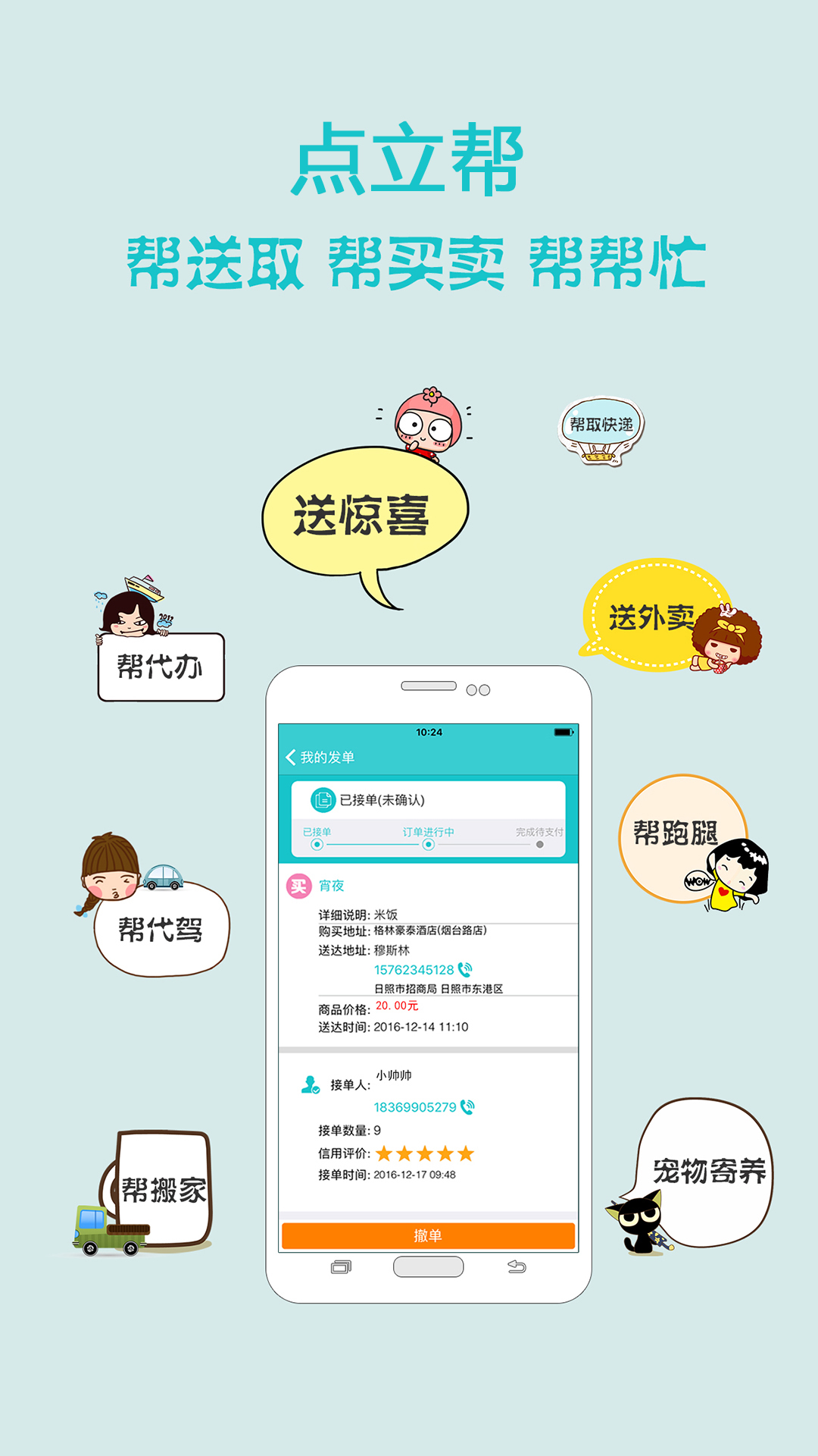 【功能】:帮送取、帮买卖、帮帮忙;点立帮,啥都帮。