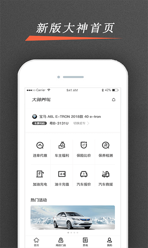 大神养车是国内领先的汽车维修养护服务平台,为全国广大车主用户提供违章查询办理、汽车智能保养检测、加油充电优惠、车险报价、查找周边门店等一站式服务。解决了车主用户养车贵、修车难的问题,成为车主用户必备的在线工具箱。