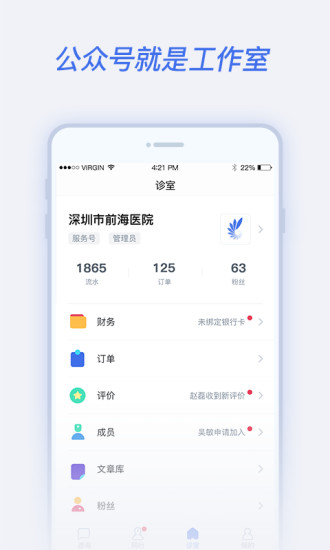 用自己的公众号跟患者沟通:比个人微信更隐私,微信关系链传播,建立信任