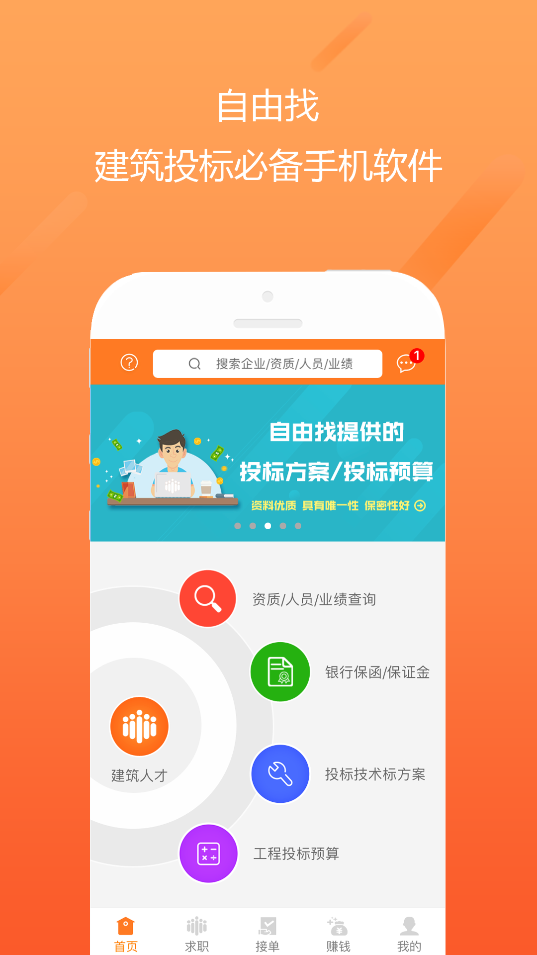 自由找是中国专注于建筑投标服务的手机软件,为建筑投标人士提供建筑企业资质、建造师、中标信息、投标人员(招投标经营人员)电话查询、荣誉查询、施工组织设计方案代写、编制预算组价、开具银行保函、建筑人才求职、建筑人才查找、合作赚钱等一站式投标服务。