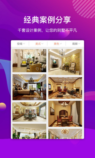 《别墅装修》来自于擅长不同风格的别墅家装设计师们,它通过展示别墅整体空间布局和局部细节图,加以文字解析,将设计师的设计构思、家装策略、设计实力直白地体现出来,这是用户寻找别墅装修灵感、找寻合适的别墅家装设计师的有效途径。登录家居在线(www.jiajuol.com)官方网站了解装修app软件信息。 为您提供如下功能: