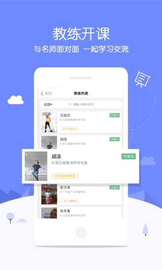 【教练列表】 在这里,可以快速找到导师级教练,面对面学习热门舞蹈。