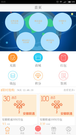 【兑流量】WO流量钱包全力支持快速充值、流量币兑换、红包抢赠赚取移动、联通、电信三网流量,自动充值,光速到账!