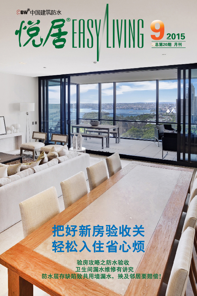 《中国建筑防水?悦居》杂志由中国建筑防水协会、中建材防水材料公司、中国建筑材料科学研究总院苏州防水研究院主管主办,《中国建筑防水》杂志社编辑出版。杂志聚焦于业主(住户),家居装潢和物业管理从业人员,家居防水防潮及其相关材料生产和销售企业,防水防潮及其相关家装施工专业企业和人士四大群体。杂志服务于家居防水的环保和品质提升,服务于居室渗漏的诊治,为千家万户速递居室防水资讯,解惑析疑。