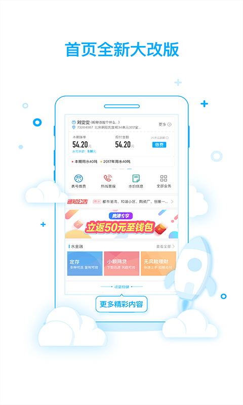 提供多种超值商品兑换和购买优惠,水费增值金融产品服务等各类增值服务。