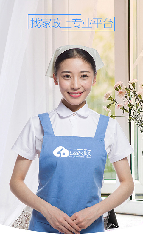 云家政,专业的家政服务预订平台,拥有3000家家政服务商,35万名100%实名制家政服务人员.我们提供家政七大工种服务人员(日常保洁、长期钟点工、住家保姆、月嫂、育儿嫂、看护老人),现已覆盖北京、上海、广州、深圳、杭州、天津、南京、武汉、成都等19个城市,未来将不断拓展服务品类,满足您对家庭服务的所有需求。云家政,为您提供简单、舒适的生活,带给您方便、快速、安心的家政服务体验。