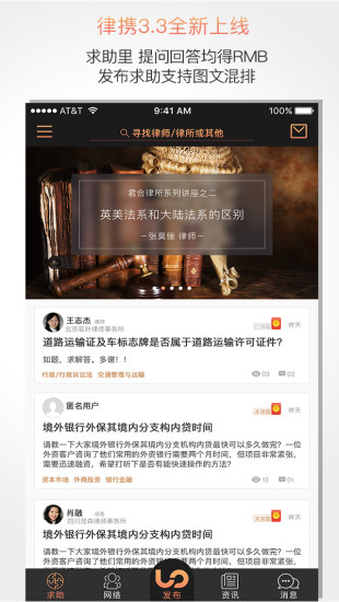 【互助】法律从业者之间进行业务上的协助与交流;招贤,律所和律师可以发布招聘信息,提供协作机会或工作机会;