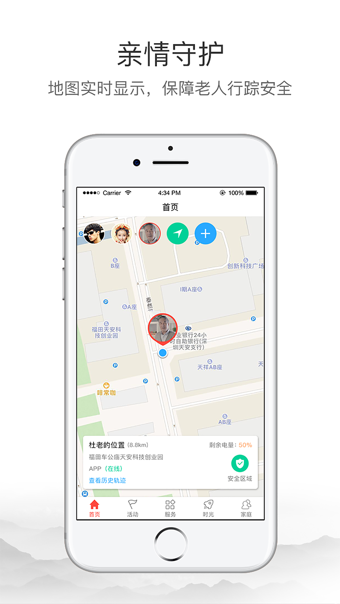 1、亲情守护:地图实时显示,保障老人行踪安全