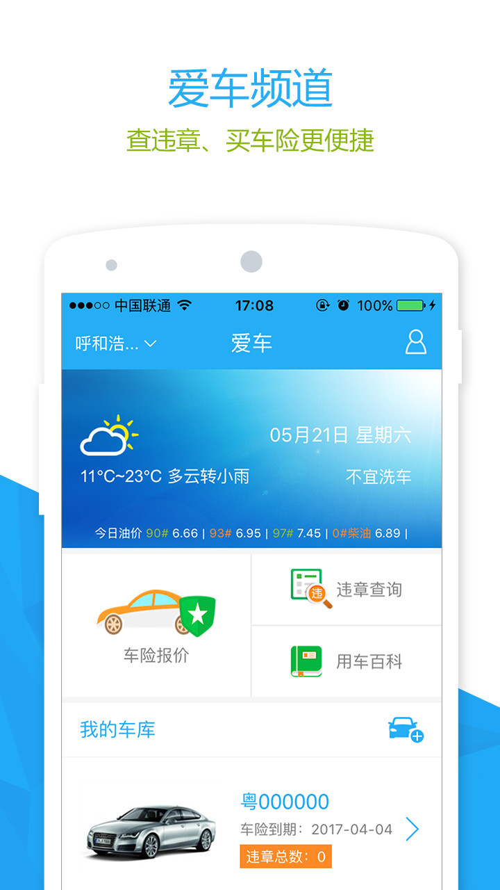 【查违章】全国三百余地市违章查询,添加爱车新违章自动推送,关心您的爱车状况;