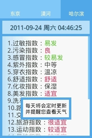 事先声明:本软件是纯文字的,没有任何图片,想看动画太阳,想要漂亮壁纸的的可以不用下载了,没有,以后也不会有,如果你只是需要一个看天气的软件,可以来试一下。