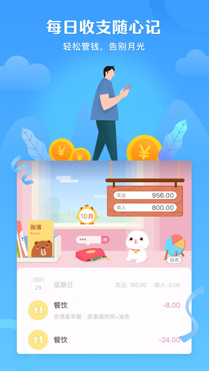 简单实用的财务分析记账软件,可爱又清新的萌系人士专属,专注记账理财、资金管理,认真记录财富生活,口袋里超萌超好用的随手记帐本。