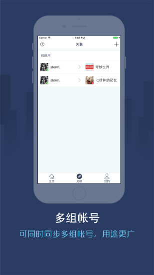 1.打开同步圈APP,在关联界面添加关联帐号。
