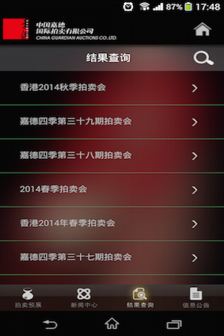 The Cguardian catalogue App is designed to take full advantages of growing new mobile devices, as smartphones, with their handy features and good operating experience. Based on Apple iOS, with handheld mobile devices of iphone, for example, to be its carrier, the app acts as a plat which conveniently delivers Cguardian Auction’s all relating information to the whole end users, including collectors, buyers, investors and art lovers, etc. Users can rapidly access to relevant auction information on their iPhones anytime anywhere. The main features including: