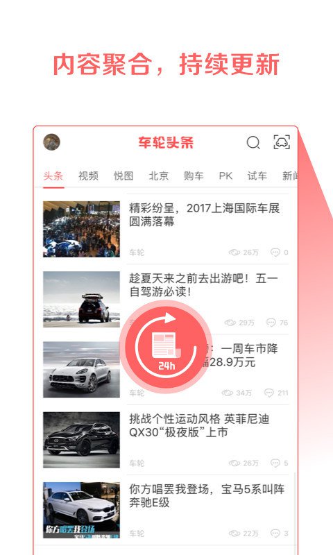 车轮头条是车轮旗下的汽车资讯聚合平台;通过搜索引擎24小时不间断的信息搜集和分析,提供真正的一站式阅读体验;配合车轮用户大数据系统,能智能分析出用户的关注点和阅读习惯,从海量内容中推荐,满足个性化需求,让车主和准车主的用车生活更美好。