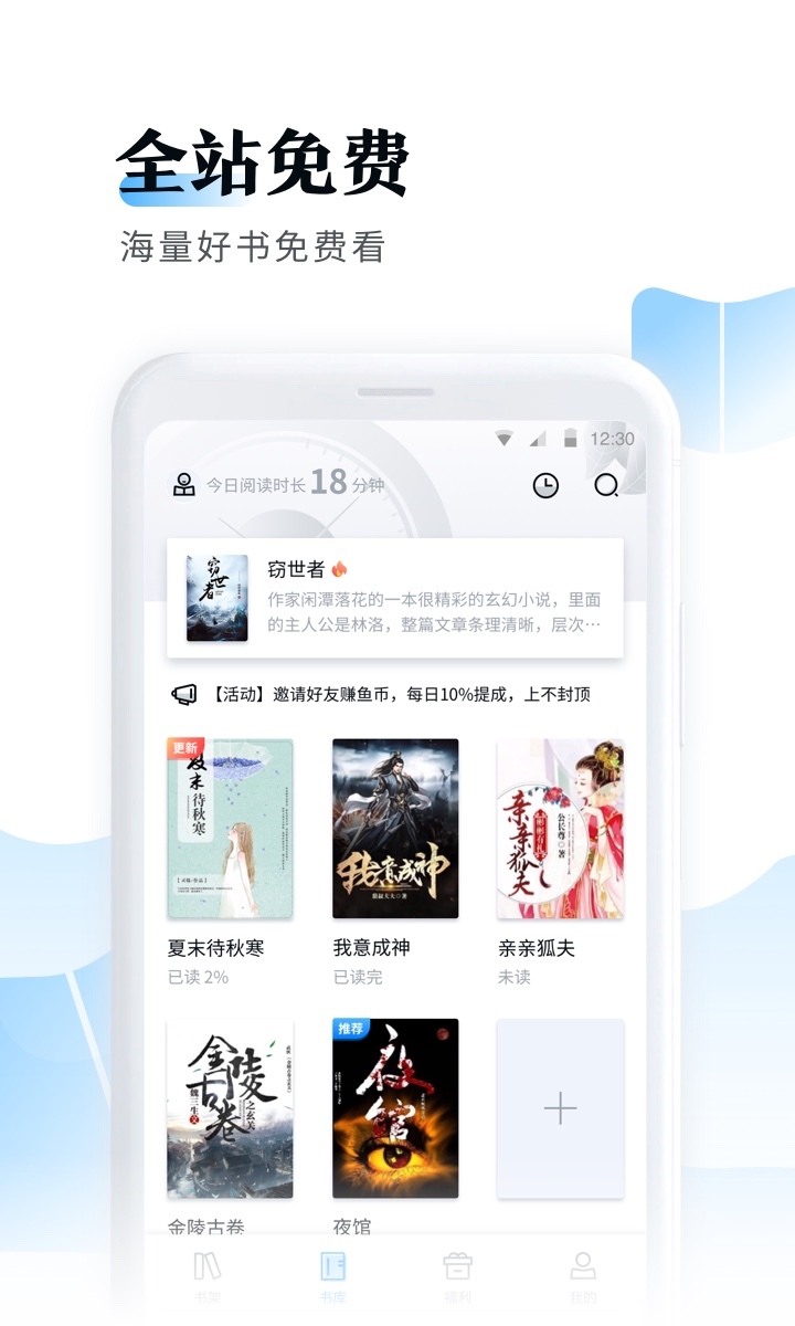 鱼悦追书是一款主打正版、海量内容的小说阅读器,让你看书不花钱,还能尽情享受阅读时光。