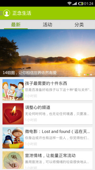 在这个时代,每个人都承受着各种各样的心理压力,工作上、生活上、感情上的压力等等,很多人甚至迷失了自我,正念生活是首款提供正能量的APP,引导人们找到自己,改变心理状态,进而改变生活。
