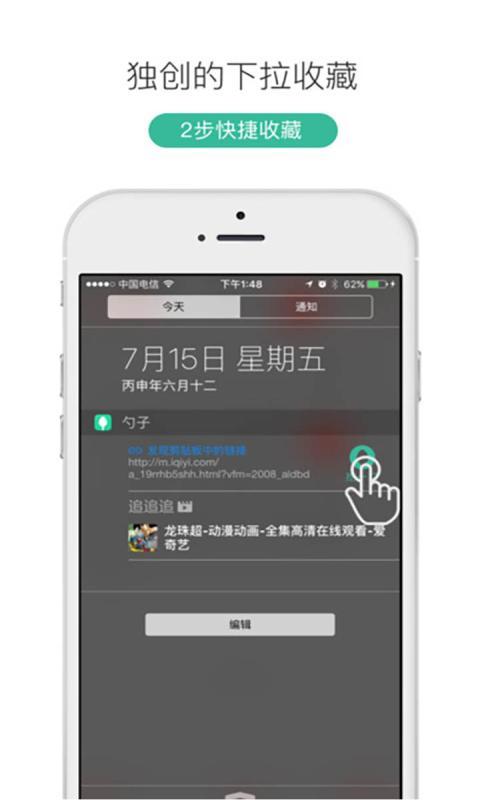 · “追!追!追!”: 适合用来存放近期要追的剧、漫画、连载等。 收藏到这个收藏夹之后,手机下拉菜单中会出现快捷入口。