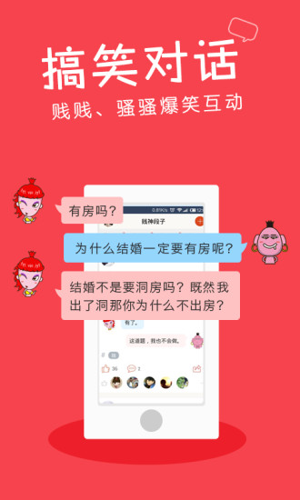 还在为语出不惊人的幽默感而担忧?还在为碎片时间无所事事而惋惜?还在为得不到女神欢心的新梗而烦恼?你需要一个充满内涵幽默且无比欢乐的气氛,你需要接触新鲜段子,打造具有潜力的话题。快快加入贱神段子,与贱友们一起畅游幽默的世界。