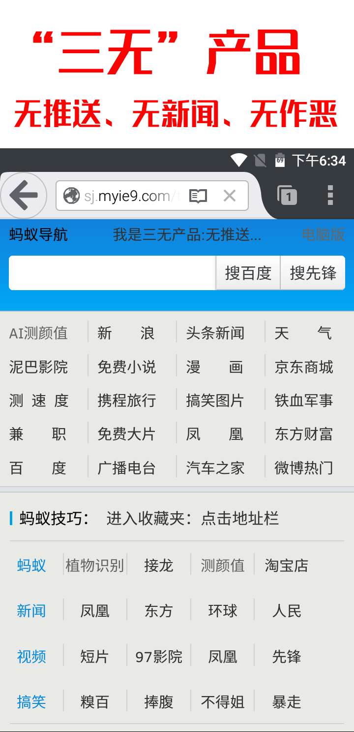 5. 安全:已通过金山360杀毒验证,由北京蚂蚁浏览器公司出品,公司理念:不作恶。