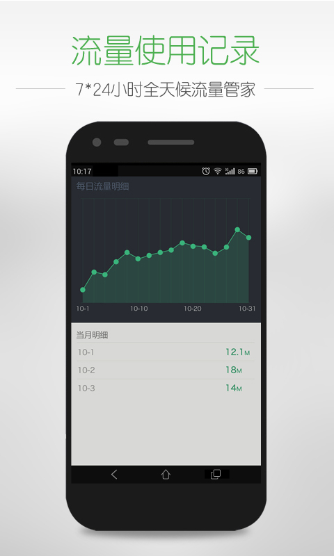 2、智能流量统计,月剩余流量、今日已用流量、本月已用流量,实时监控每天流量数据,让你不再为流量超额担心;