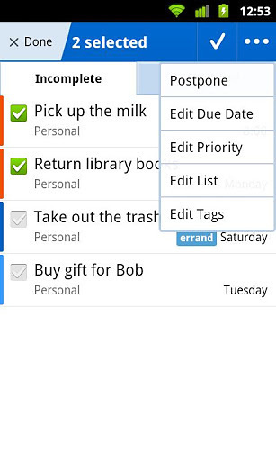 Remember The Milk是一款*的GTD管理安卓应用,再也忘不了牛奶(或其他事情)了。可以免费注册使用的Remember The Milk包括了以下一些功能: 简单快捷地管理日常任务 设计优良的界面让管理待办事务更加愉快,你甚至可以使用类似下周五或两周内来定义事务到期时间。当然也可以使用键盘快捷方式加速您的日程管理。 无处不在的提醒 通过电邮、短信和即时通讯软件(支持AIM, Gadu-Gadu, Google Talk, ICQ, Jabber, MSN, Skype 和 Yahoo! )接收提醒。 按自己的方式管理信息 你可以根据需要创建任意多个列表。所有事件都可以定义标签,并且可以通过“标签云”看到需要待办的事务。另外,你也可以针对事件创建便签记事。 定位自己的任务 使用地图来查看你的任务在现实世界所处的地点,查看他们是否就在附近,并且有计划的以*方式完成任务。 协作模式 通过你的联络对象或整个世界分享、邮寄和发布任务与列表。 无论何时何地添加任务 添加任务像发送一封邮件(甚至是打电话)一样简单。在网上查看一个重要的约会?用快速添加项将它添加到你的列表中。