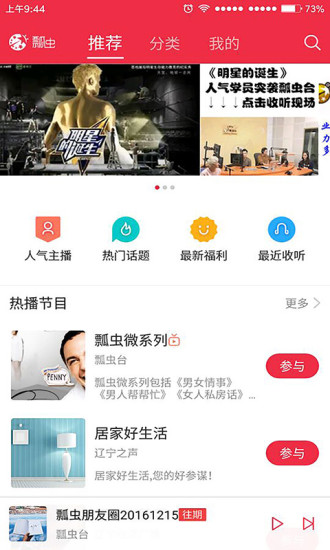 5)摆脱冰冷的传统电台,加入“瓢虫FM”让您拥有不止收听的体验!