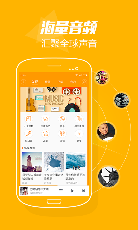数千名主播为你打造火爆节目:名嘴讲笑话、内涵段子、相声大全、经典评书、有声小说、儿童读物和儿歌、综艺娱乐、郭德纲、夜的私房话