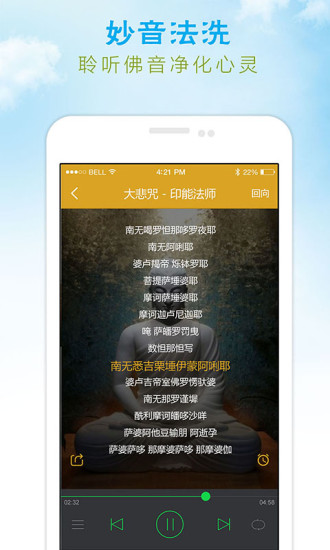 特色功能:佛乐品类齐全、支持离线使用、支持定时停止播放。