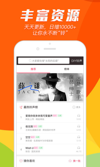 【铃声更新不间断】火热铃声秒速更新,日更新1000+。网罗分享量超高的铃声、汇总个性十足的铃声。实时运营,致力做更新速度快到飞起的铃声实力派。