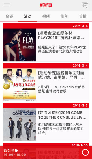 在感动之初,流行之前,音乐之声用最真实的声音与你相遇 全面覆盖中国64座城市和地区,超过3.9亿人口的MusicRadio音乐之声带来全新电台APP,无限畅听电台节目,独家新鲜资讯,明星Live视频,专业权威榜单,惊喜互动赠奖……掠动在城市之间,我要我的音乐! 【听了又听,潮流的广播节目】 同步收听电台声波,与DJ主播悄然相遇,在穿梭的音符之间,聆听不同声音,私家留言室让你的评论随手指发声; 【看了又看,海量的新鲜资讯】 精彩的落地活动,实时的演绎专场,个性的大咖视频,鬼马的爆红神曲,另类的主题歌单,独家的速递首播,整点闹钟提醒,你要的新鲜都在这里; 【赞了又赞,权威的音乐榜单】 全球流行音乐金榜、中国TOP排行榜,打造全球华语流行音乐行业模范,引领乐坛风向标; 【送了又送,惊喜的互动赠奖】 陪伴是最长情的告白,用户永远值得用惊喜表白,认真赠奖,高调抽奖,吃喝玩乐,这里统统都可以,只有想不到没有送不了; 【选了又选,专属的订制功能】 我的风格我做主,喜欢的节目,最爱的活动一键收藏,音质随心而定,一首歌曲多种感受,极致体验,一触即达!